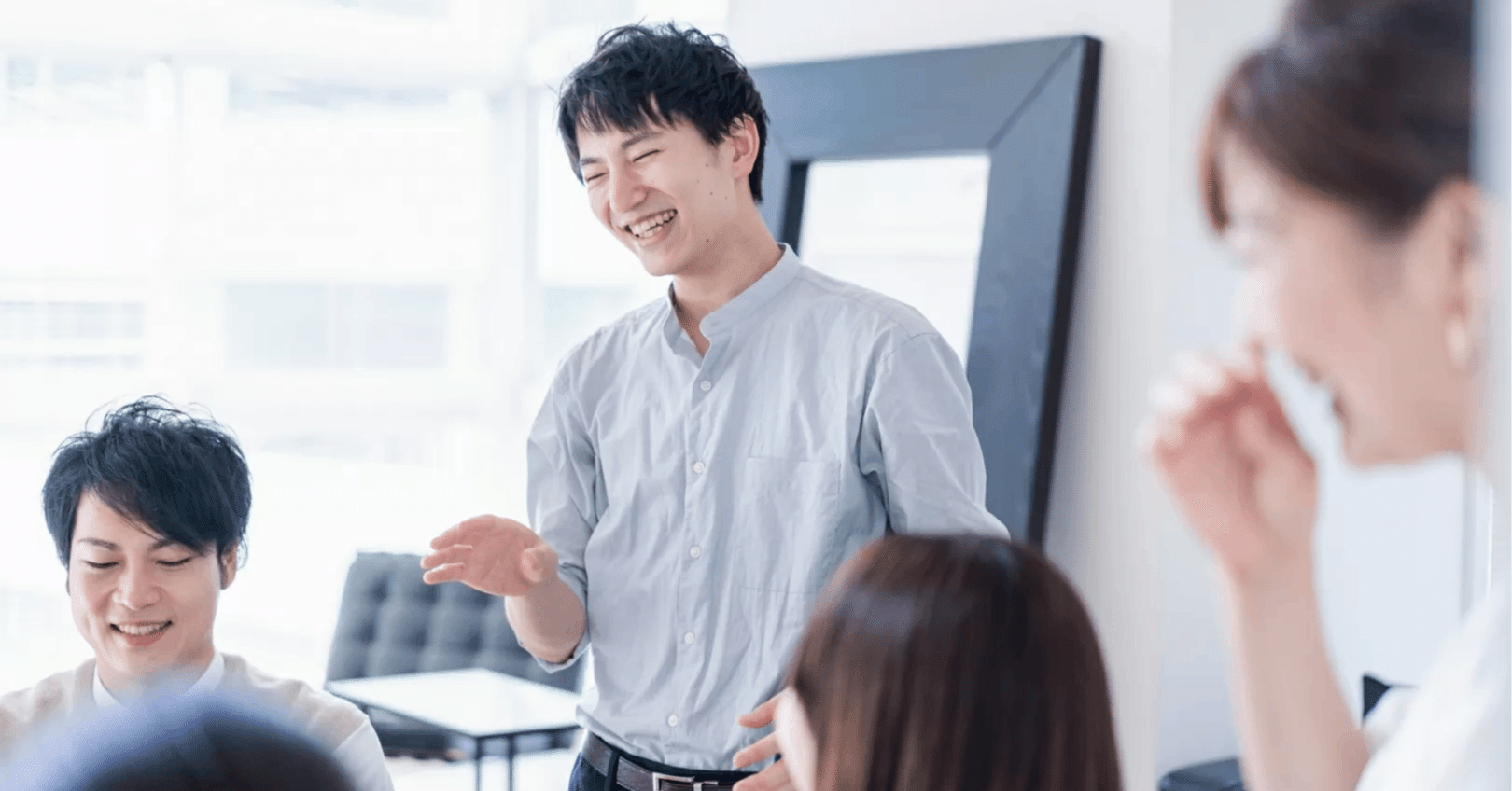 - アクティブリスニング(積極的傾聴):話を聞くときは、目を見てうなずくなどして相手が話しやすい環境を作り出しましょう。質問をすることで、さらに話を深掘りします。
